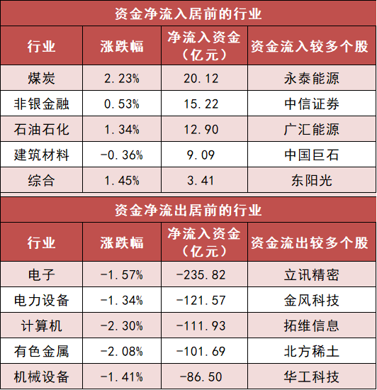 3.煤炭等行业实现净流入